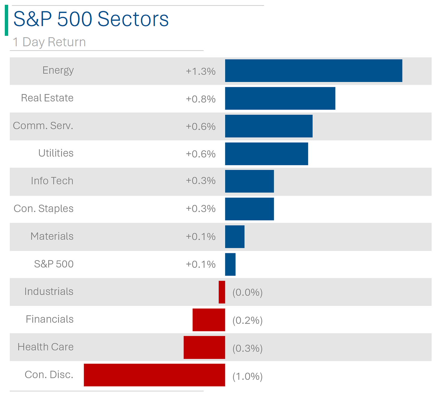 7 of 11 sectors closed up Friday, with Energy (+1.3%) finishing best after a bad start to the year. Consumer Discretionary (-1.0%) and Healthcare (-0.3%) finishing worst, after good starts to the year.