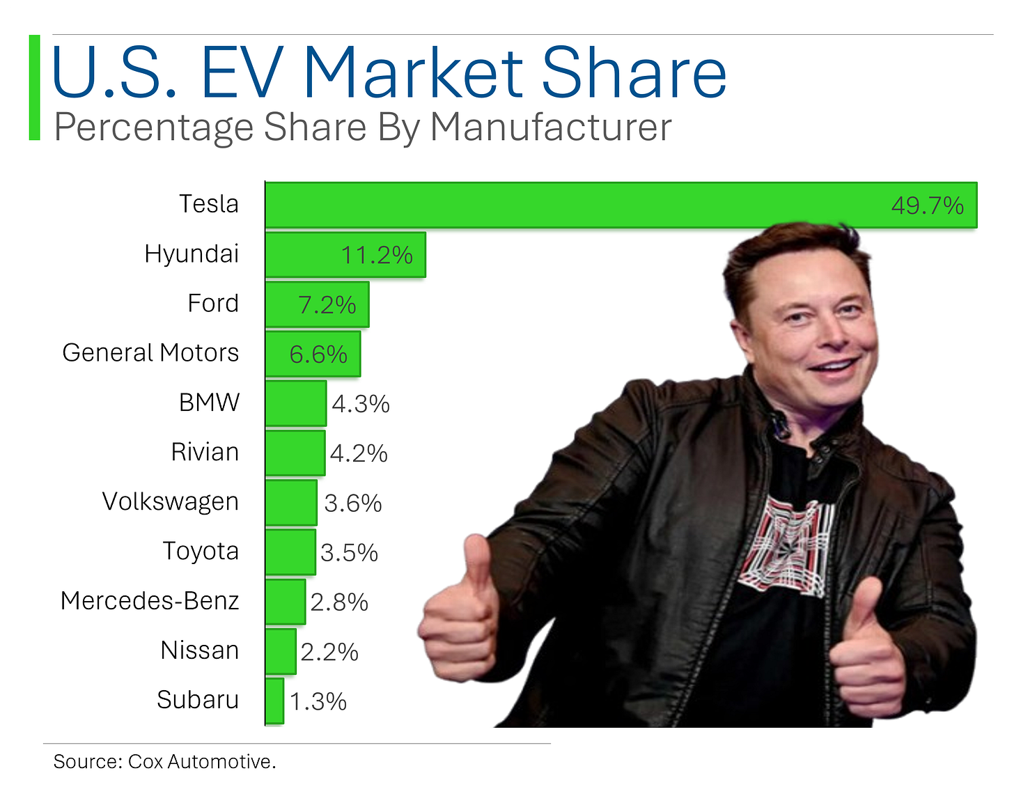 And as you can see below, this has helped other automakers garner a much more material share of the market compared to just 5 years ago.Ā