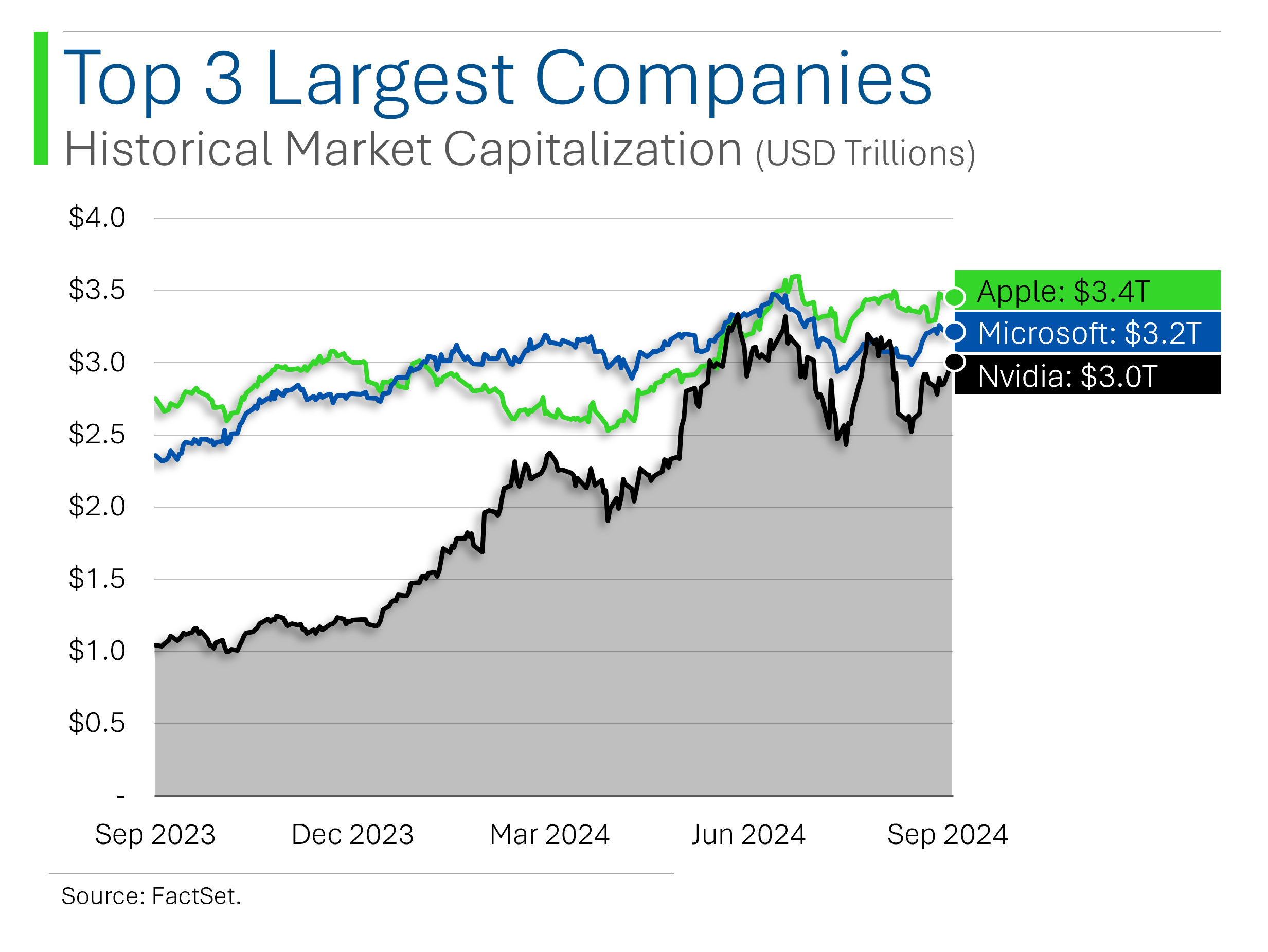 Nvidia popped up +2.2% yesterday - actually a pretty mild day for them - which means its market capitalization is back above $3 trillion again. As a result, the three biggest public companies in the world are now all back in the Triple Trillion Club (which I totally just made up).
