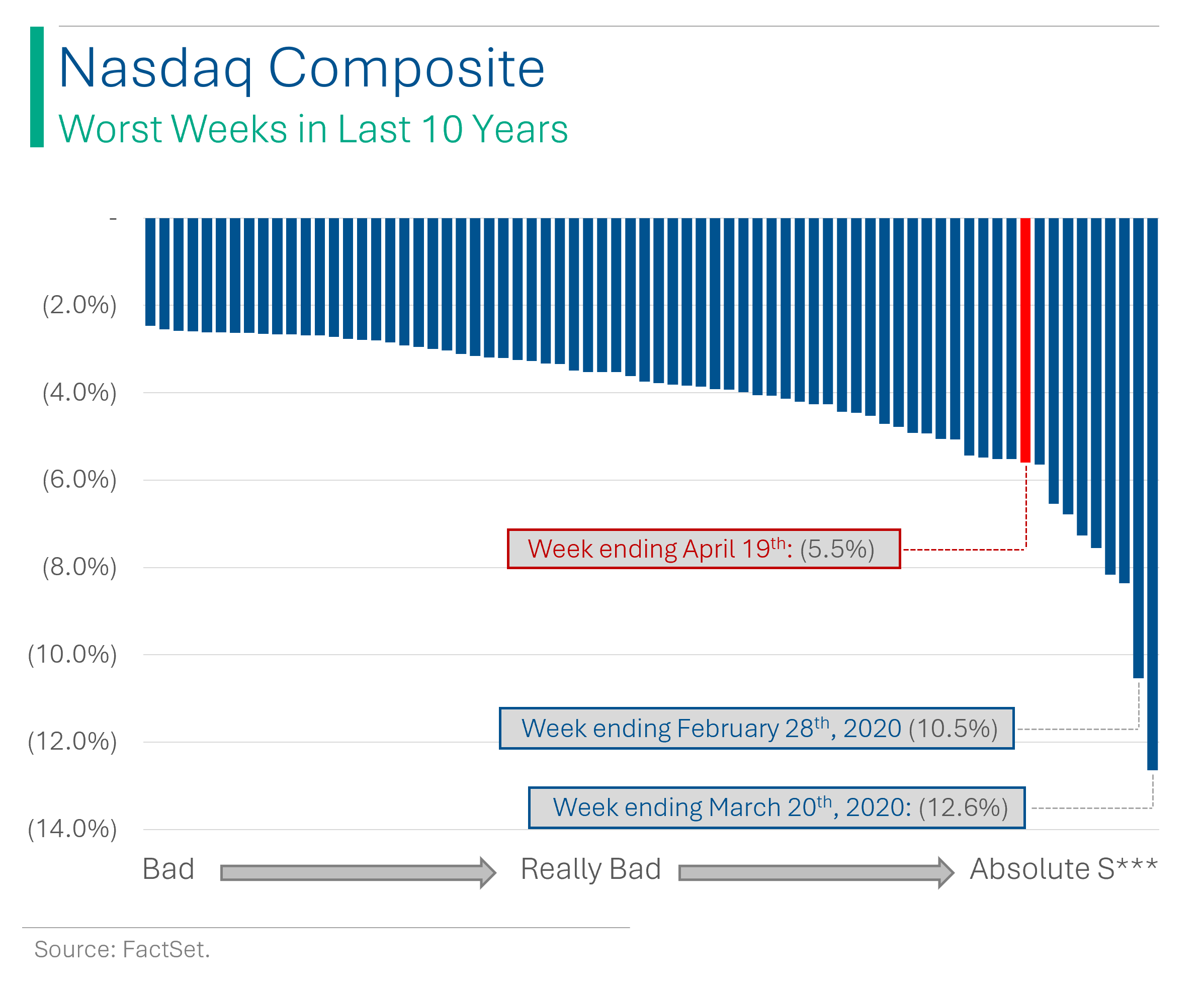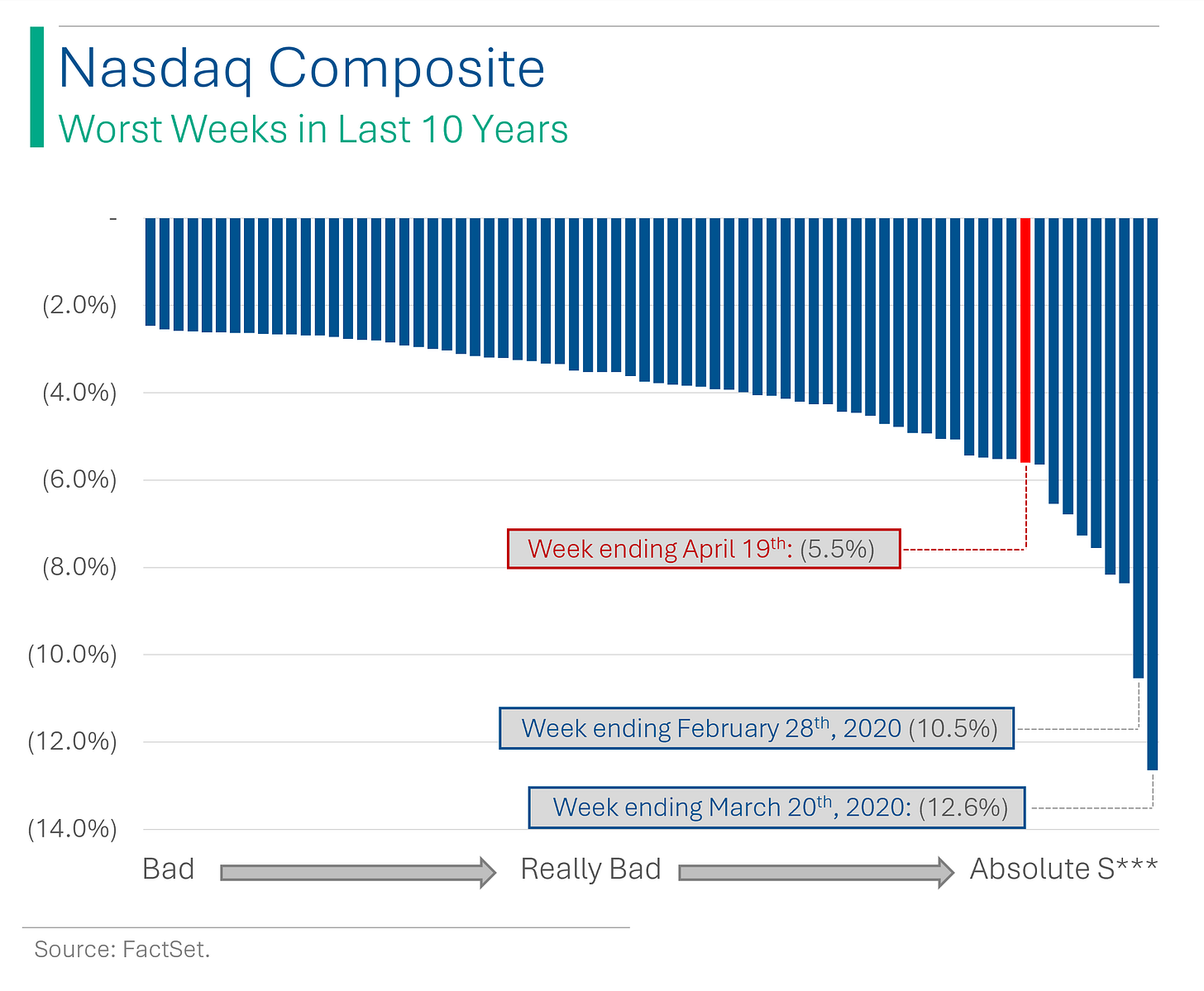 I hope everyone had a good week because your portfolio probably didn’t. The slew of negative rate news, geopolitical risk and a mediocre start to Q1 reporting made last week the worst for the Nasdaq since November 2022.