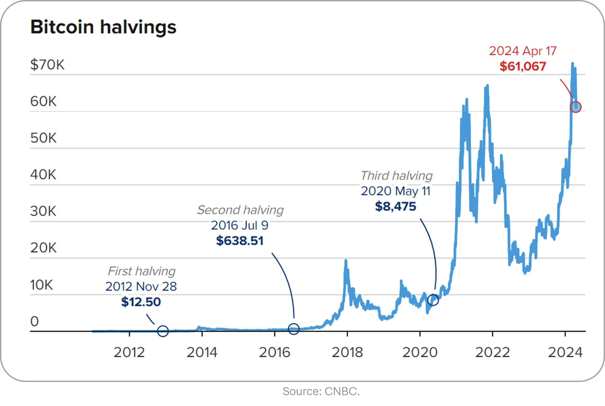 The price of Bitcoin, which recently hit a new all-time high of $76k, has been volatile before the halving and may not see significant increases post-event, as the effect is believed to be already priced in by analysts from JPMorgan and Deutsche Bank. Historically halving events were viewed as a bullish as it increased scarcity but as the price rallied hard prior the event that is not expected to be the case this time.