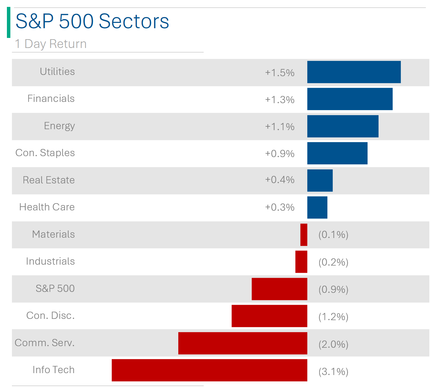 6 of 11 sectors closed up higher on Friday but this was mostly driven by defensives like Utilities (+1.9%) and Staples (+1.4%). Only three sectors closed higher on the week (Utilities +1.9%; Staples; +1.3%; and Financials +0.8%).