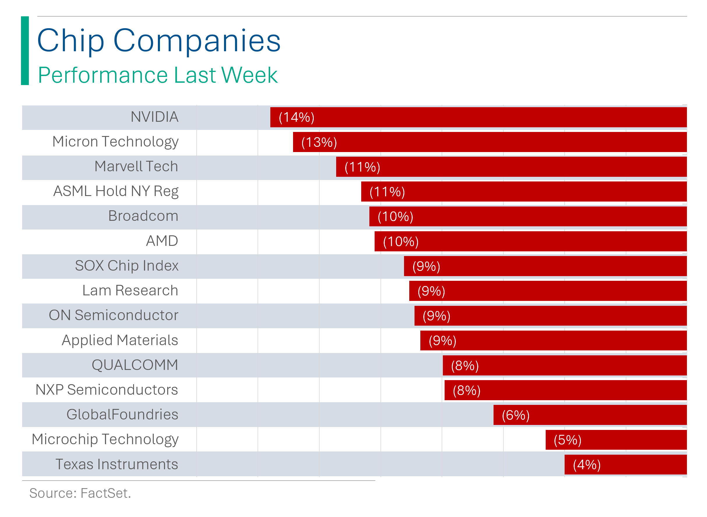 Biggest news was the implosion of the chip sector, with Nvidia down 14% this week. Soft guidance and few catalysts really suck sometimes.
