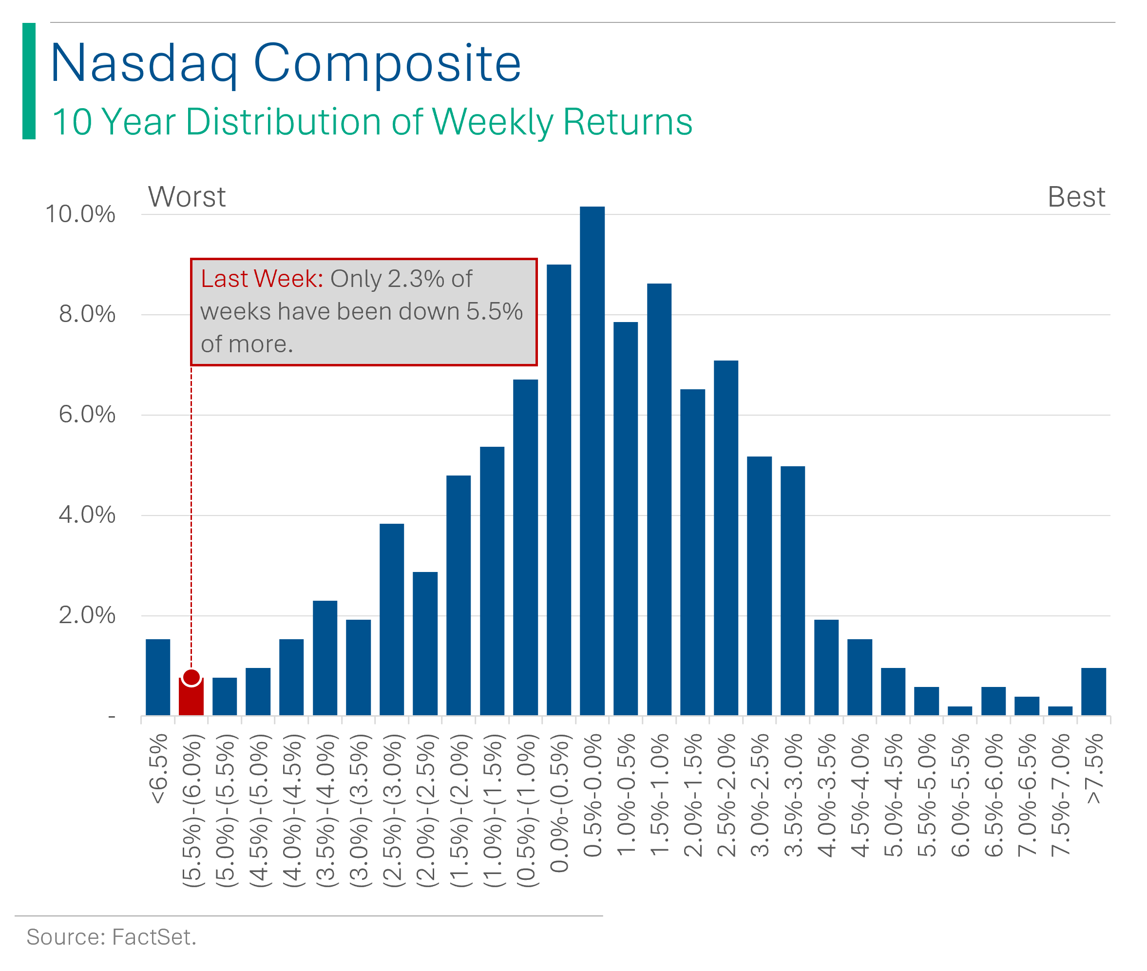 Compared to returns in the past, this was the 10th worst week in the last 10 years, and nearly all of the examples of weaker performance came during the Covid pandemic (or when the pandemic bubble burst in 2022).