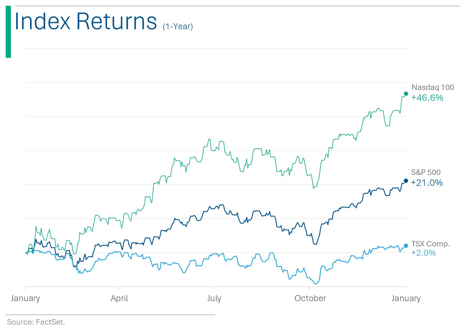 *Note that this is the average return of the companies, and isn’t market cap weighted figure that reflects the return of the S&P 500 (which was +24%). Moreover, this excludes the Energy, Real Estate and Materials companies.