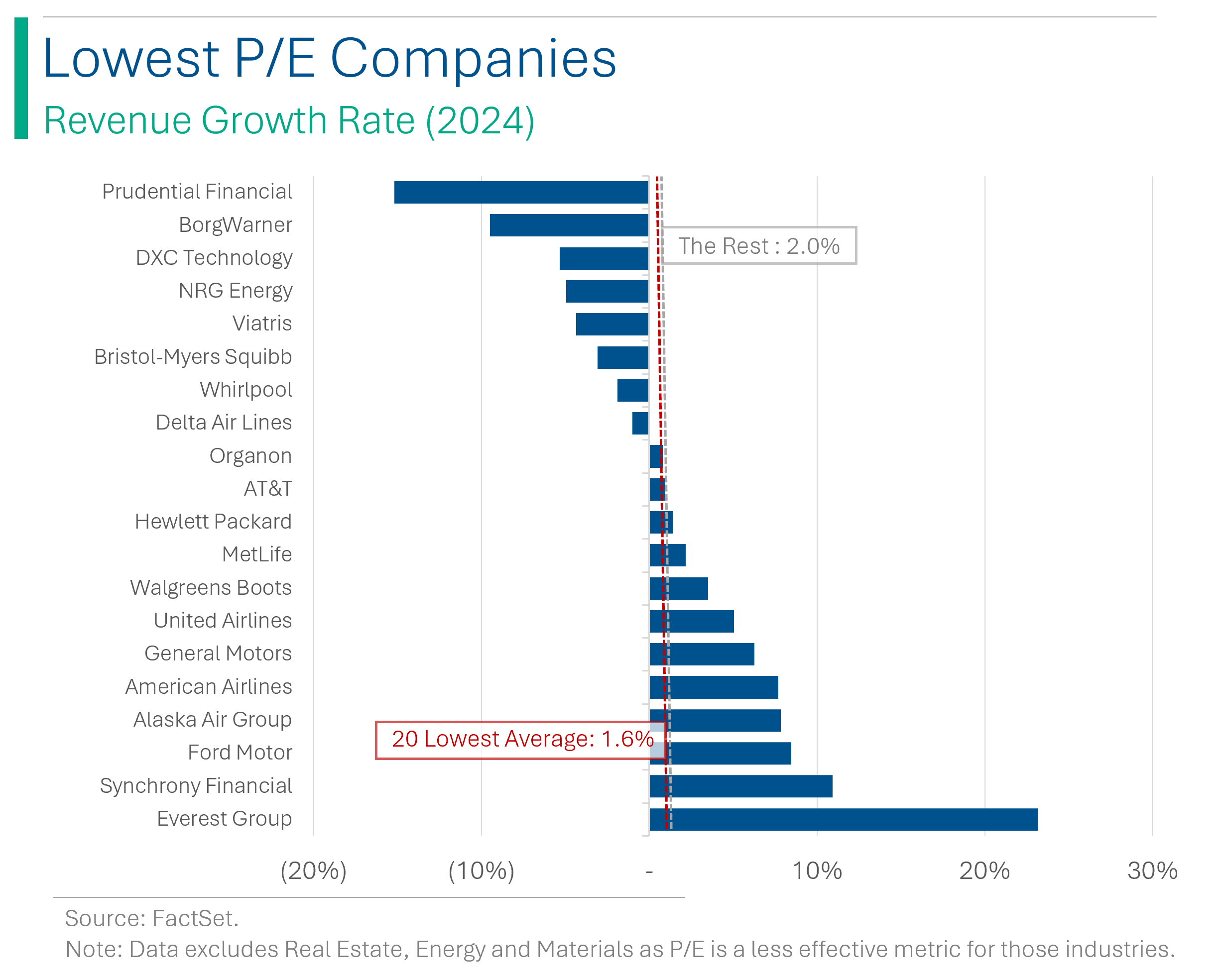 And while clearly this is a mixed bag, the average growth for the next fiscal year is 1.6% which isn’t a far cry from the 2.0% that ‘The Rest’ (the non-Highest/non-Lowest P/E companies) is forecast to make off with.