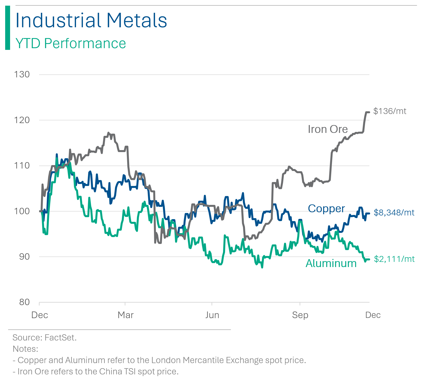 Copper is also heavily tied to construction (~43%) but is more broadly linked to demand around consumer electronics (~20%), transportation (~20%) and consumer products (~10%), which have started to pick up as the economic picture began to look less murky.