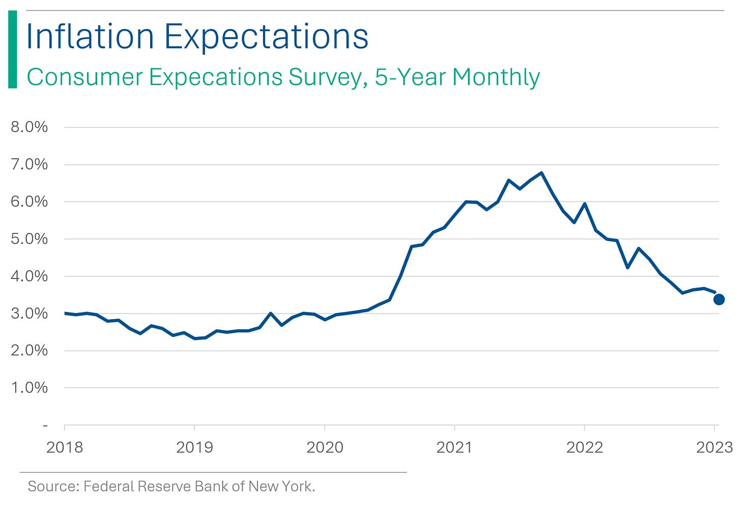 INFLATION EXPECTATIONS - The New York Fed’s Survey of Consumer Expectations showed a drop in expected 1-Year inflation to 3.4% - its lowest level since April 2021. Data for three and five years out was unchanged at 3.0% and 2.7% respectively. (New York Fed)