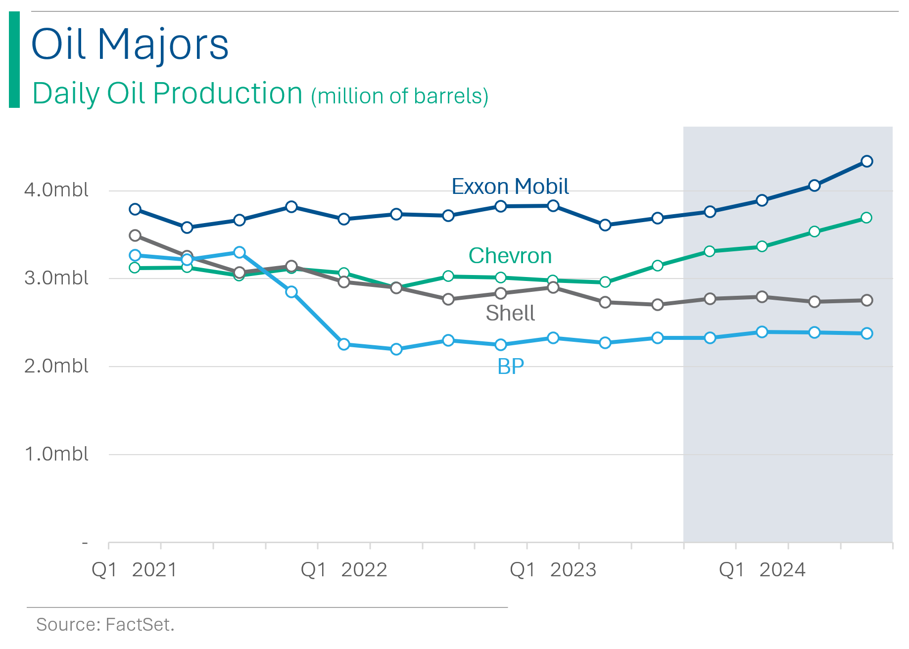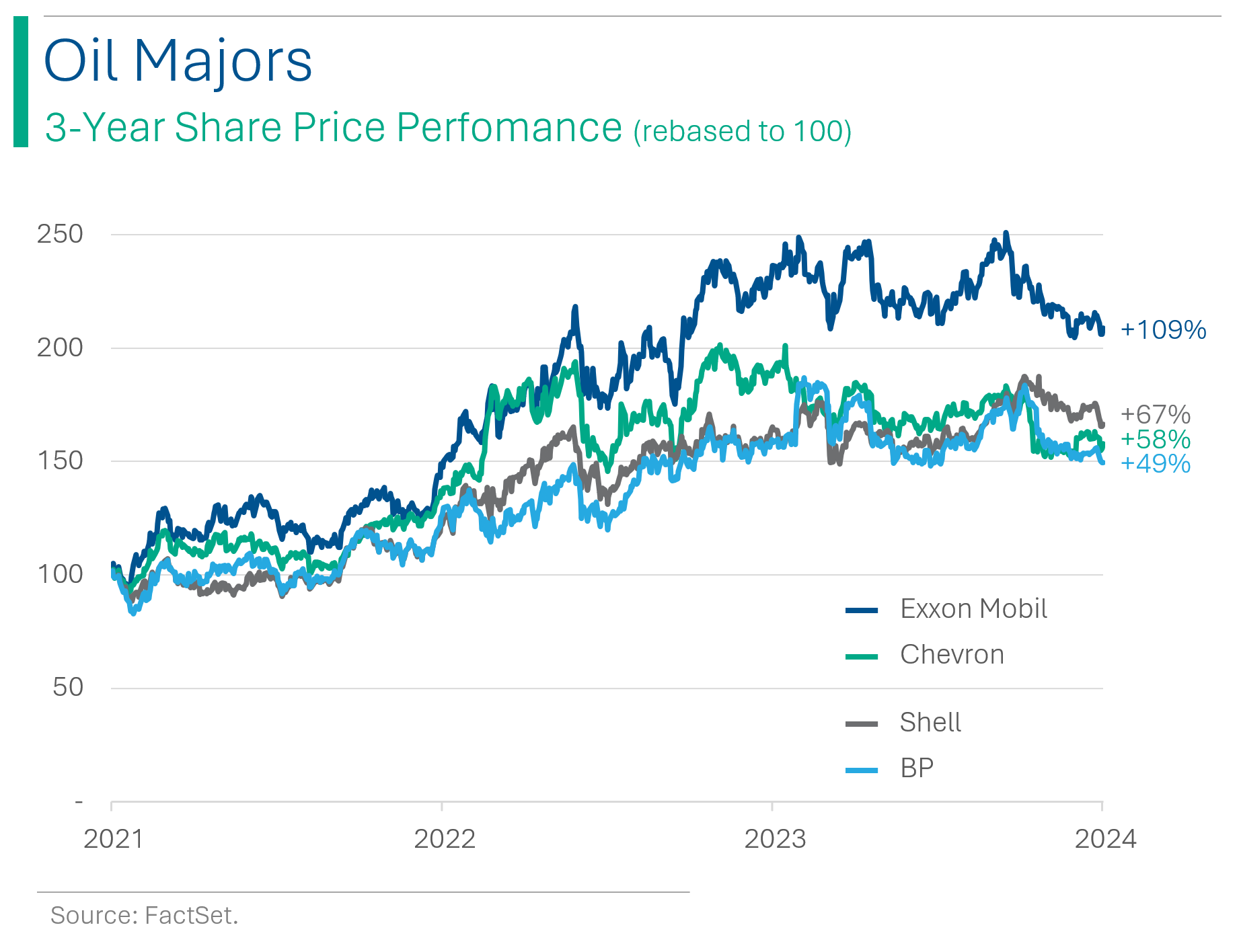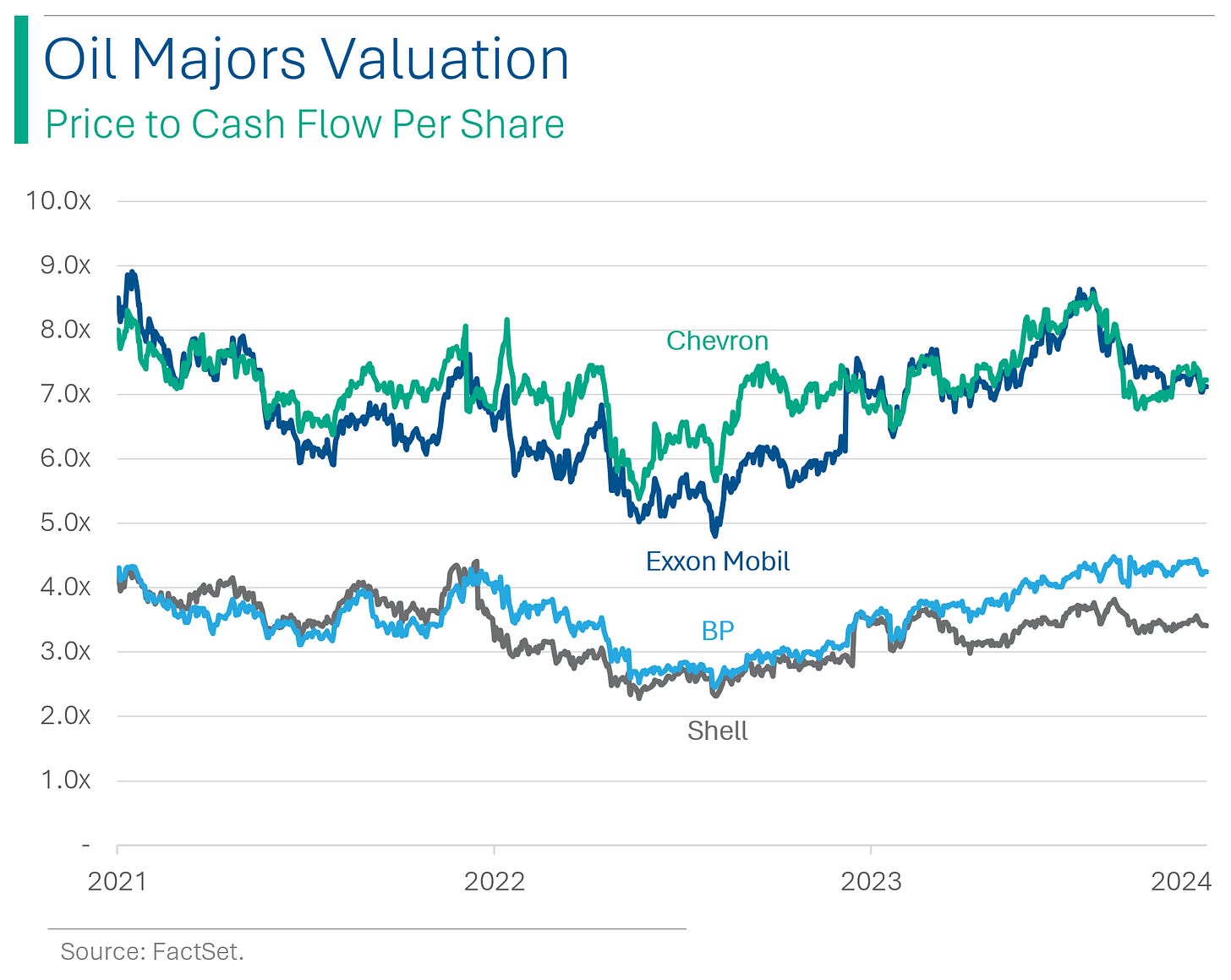 Coming out of the pandemic, the Majors went on a tear as supply issues and a shooting war in Europe kept the oil price high. While (ex-China) economic activity around the globe picked back up nicely.