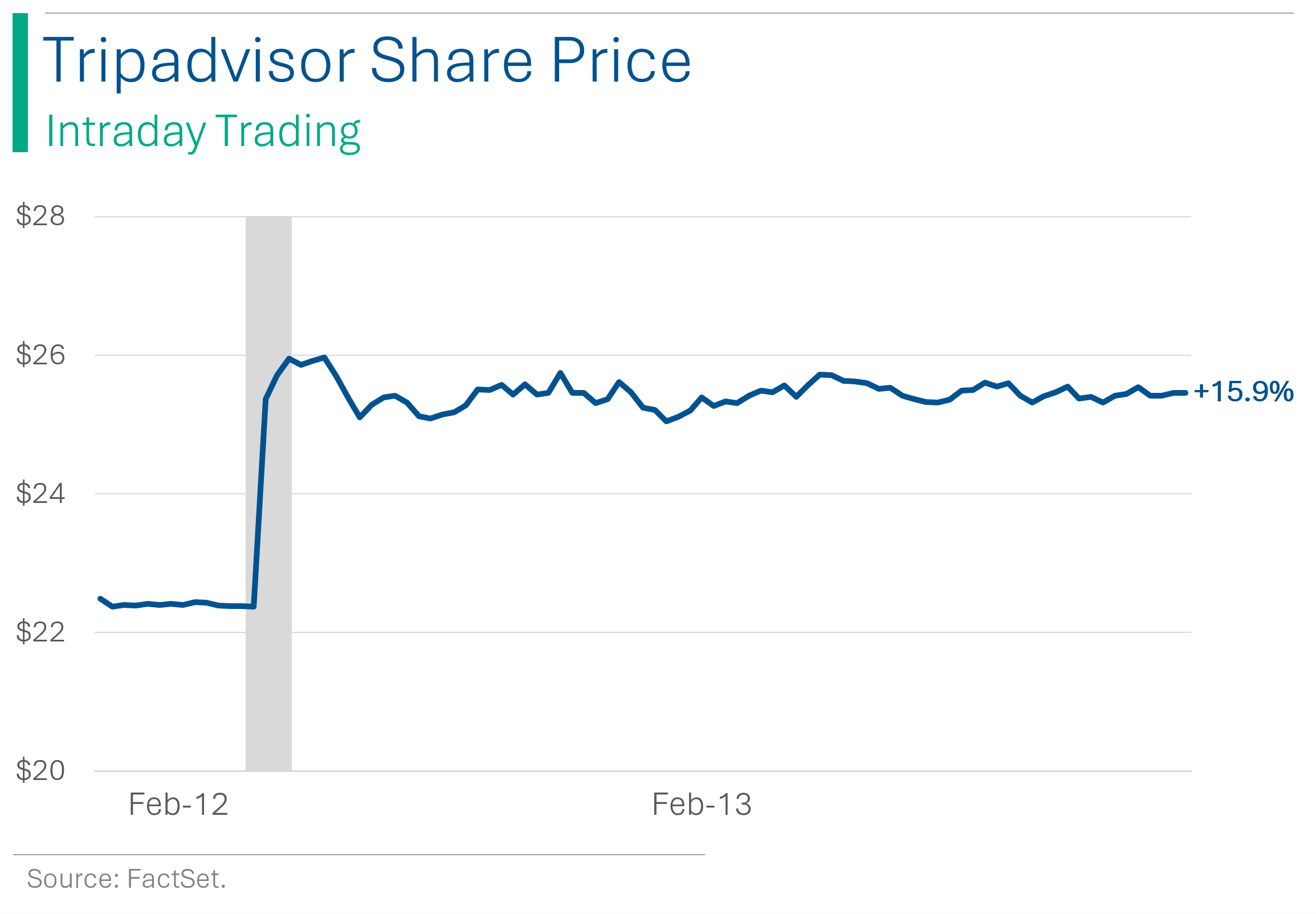 Tripadvisor's shares surged 16% following an announcement that its board is considering strategic options, including a possible sale, with boutique investment bankers Centerview Partners advising the company. Tripadvisor’s controlling stake is held by Liberty Tripadvisor Holdings, part of giant bigwig John Malone's portfolio, which has (allegedly) received at least one bid for its interest in Tripadvisor. Amidst financial challenges, particularly Liberty Tripadvisor's significant debt, there's speculation that Tripadvisor's assets might be leveraged to manage this burden. The travel giant reports its Q4 today, so the plot will likely thicken.