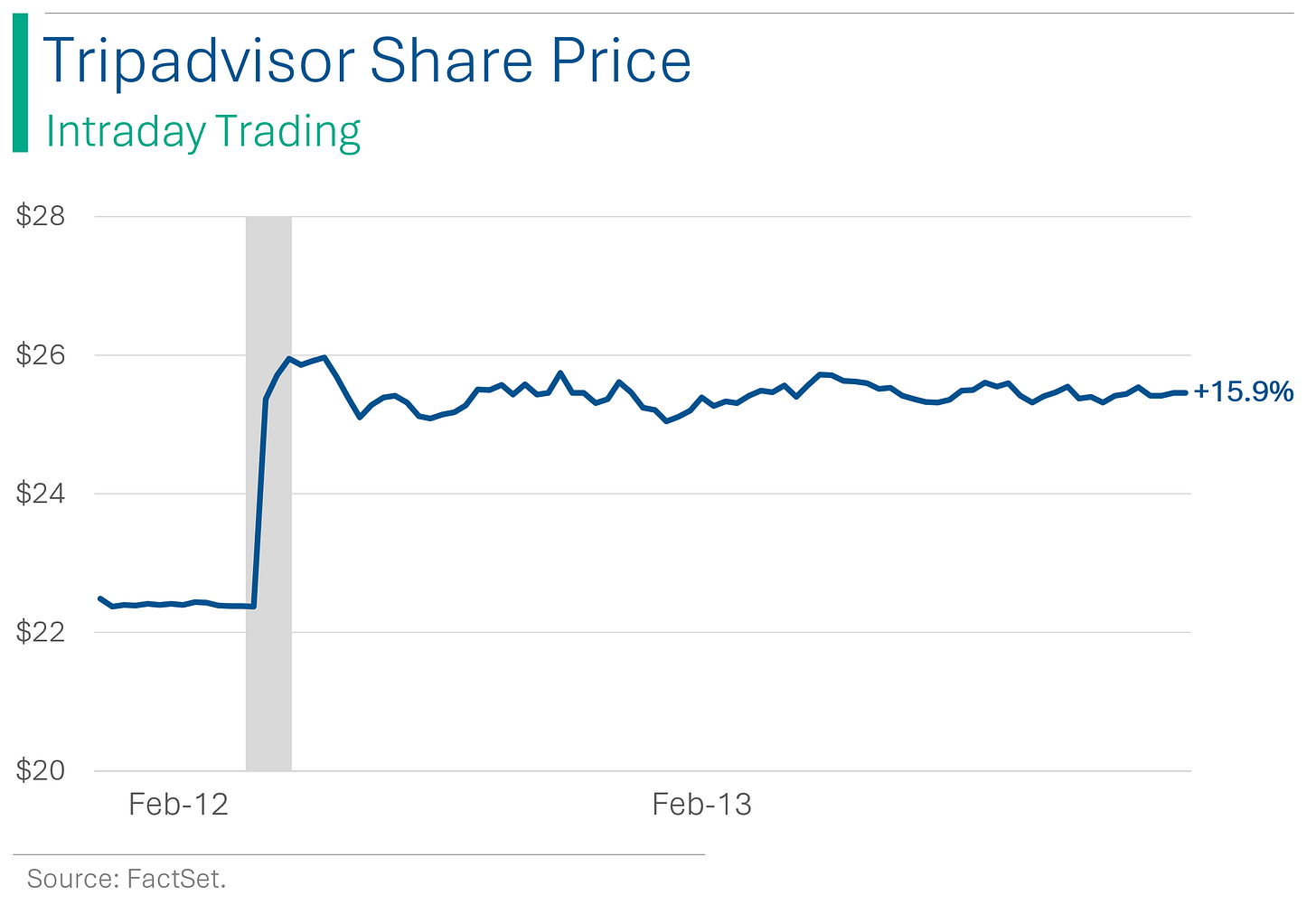 TripAdvisor (TRIP) [+13.8%]: Forms special committee to review potential transaction proposals.
