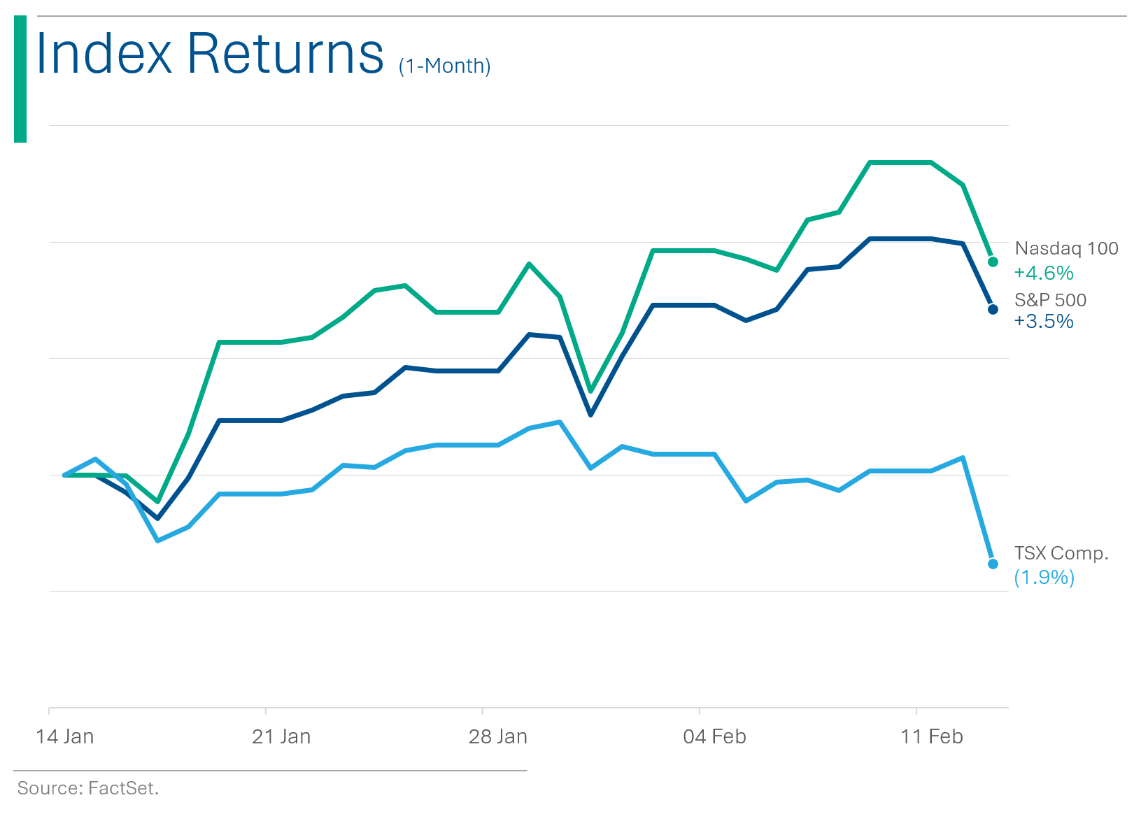 Wall Street's main indices experienced significant declines on Tuesday following a consumer inflation report for January that exceeded expectations, challenging the anticipation of near-term interest rate cuts and resulting in a sharp increase in U.S. Treasury yields. January CPI came in at +0.3% since last month and +3.1% year-over-year, ahead of the +0.2% and +2.9% that Wall Street had forecast.