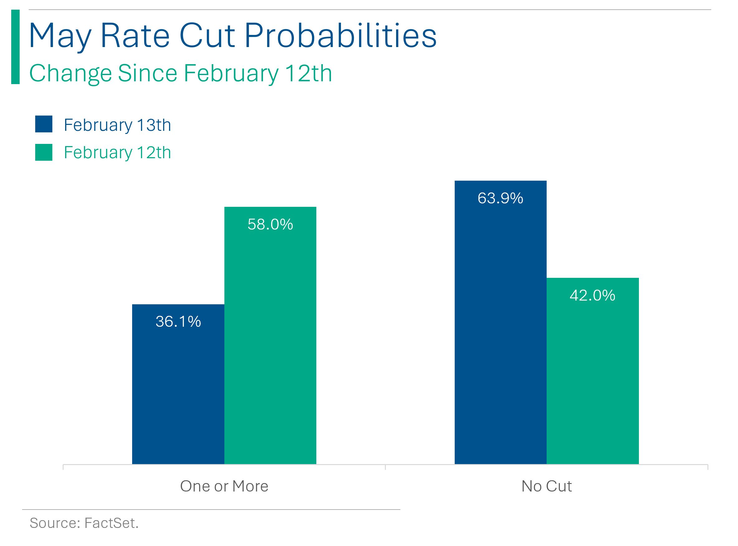 The higher-than-forecast inflation data, particularly in shelter costs, led to a reduced likelihood of the Federal Reserve cutting rates in May, with market expectations shifting based on the latest figures. The odds of one or more cuts following the Fed’s May meeting dropped from 58% to 36% in just a few short hours following the CPI print. The news compounds the recent Fed efforts to slow-play rate cuts which the Street had apparently been optimistic for.