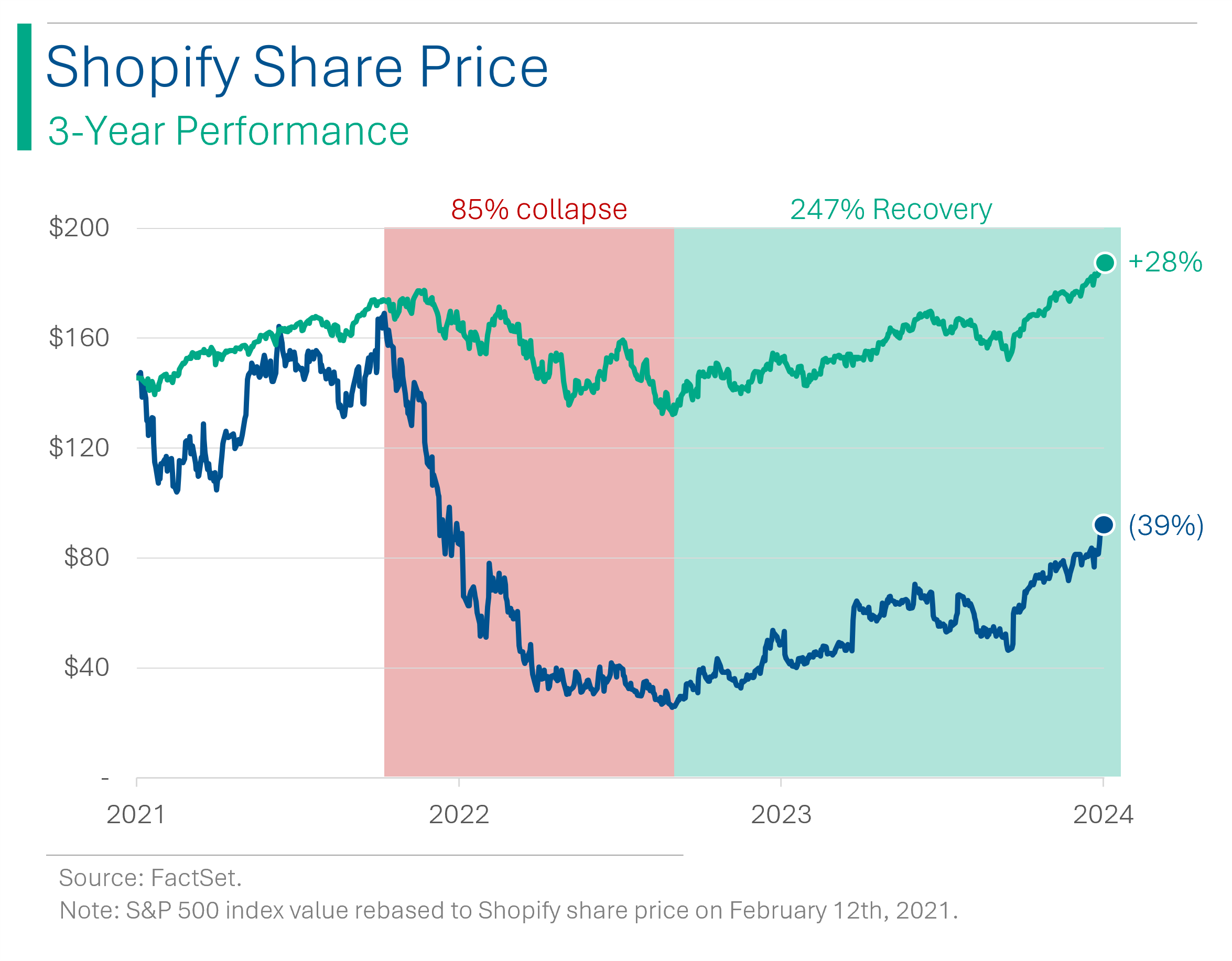 The company, which offers tools and services for business to operate their own online stores, was actually in the middle of the nice recovery since its shares blew-up back in 2022. It seemed like in a matter of hours it went from Wall Street darling, to poster child of the 2021 ‘Everything Bubble’ and back again.
