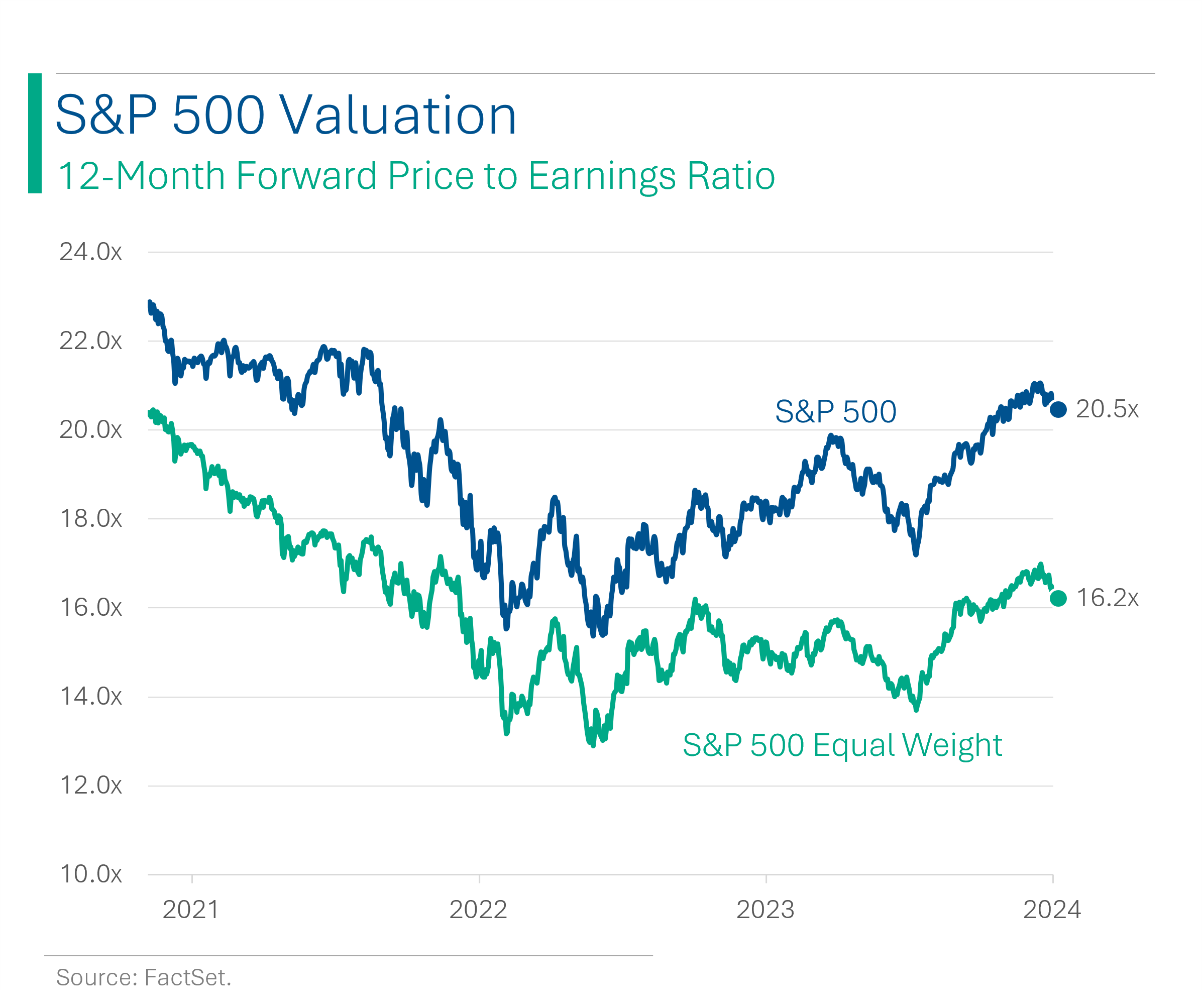 A bit of bright spot is that when looked at on an āequal weightā basis, the marketās P/E is much more manageable. Thereās lots of good companies out there that may prove more defensive than the big names that pulled the market up (and got expensive on the way).