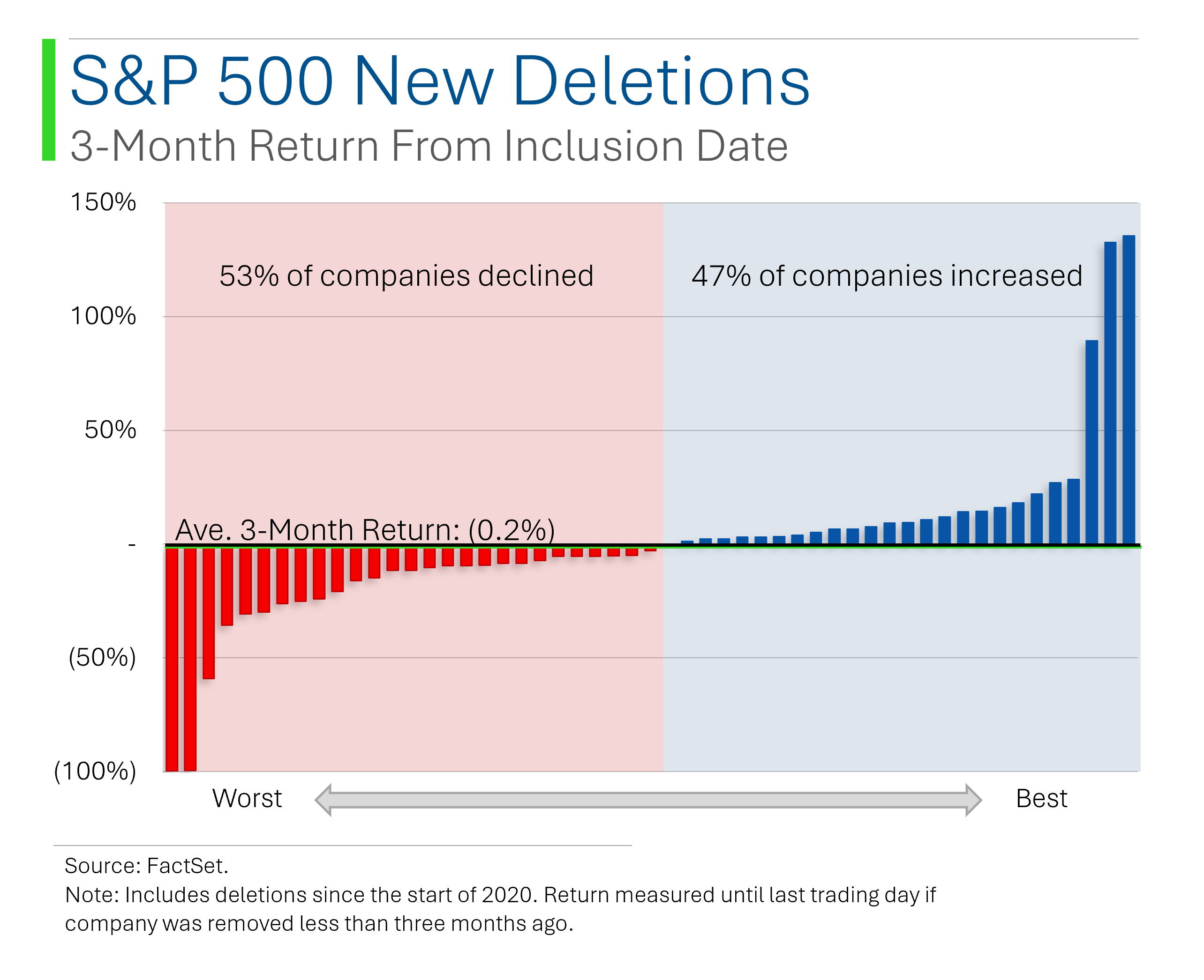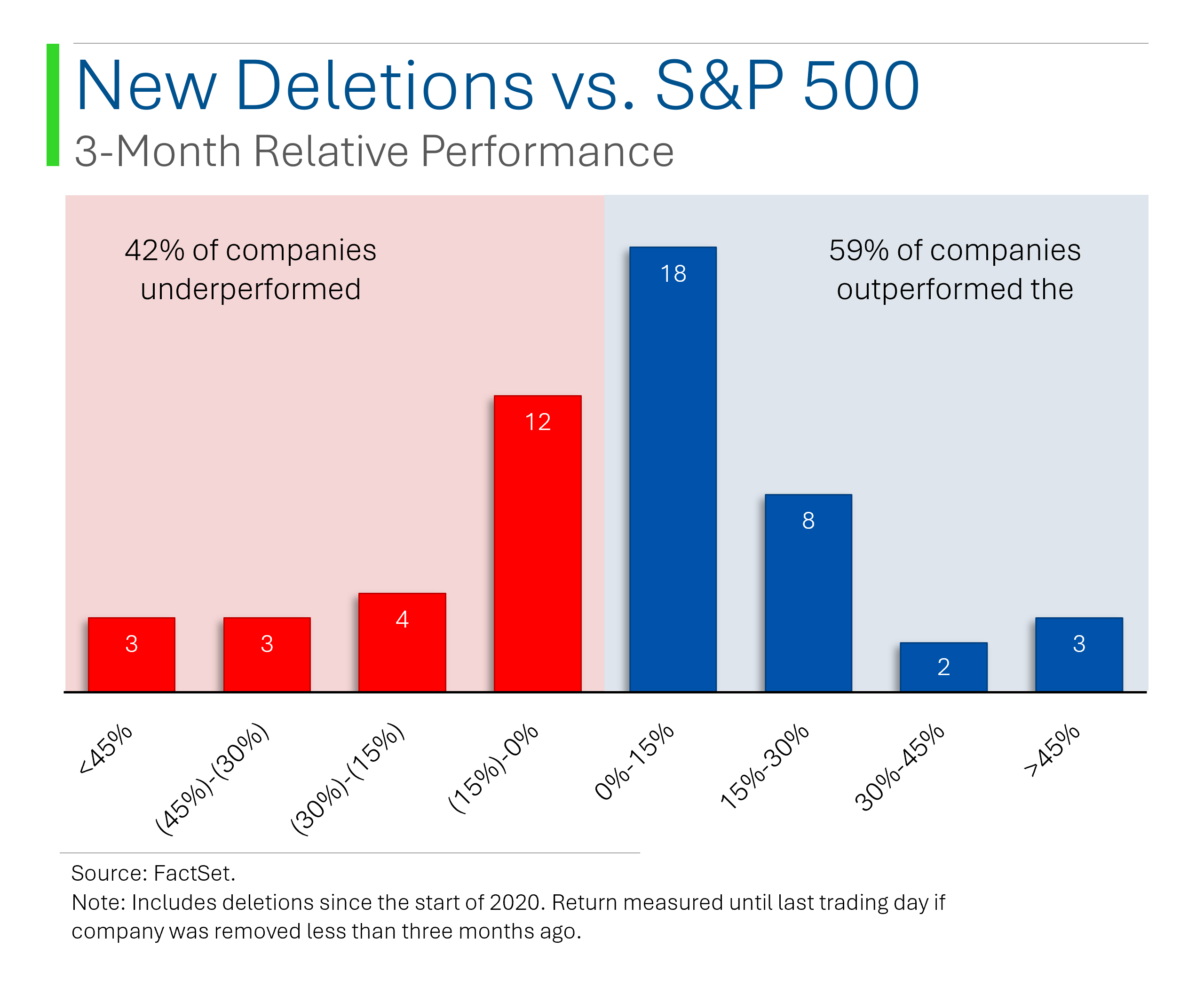 Ya see, weirdly 59% of companies that were dropped from the S&P 500 since 2020 actually went on to outperform the index, with the average company posting +6.2% relative outperformance.