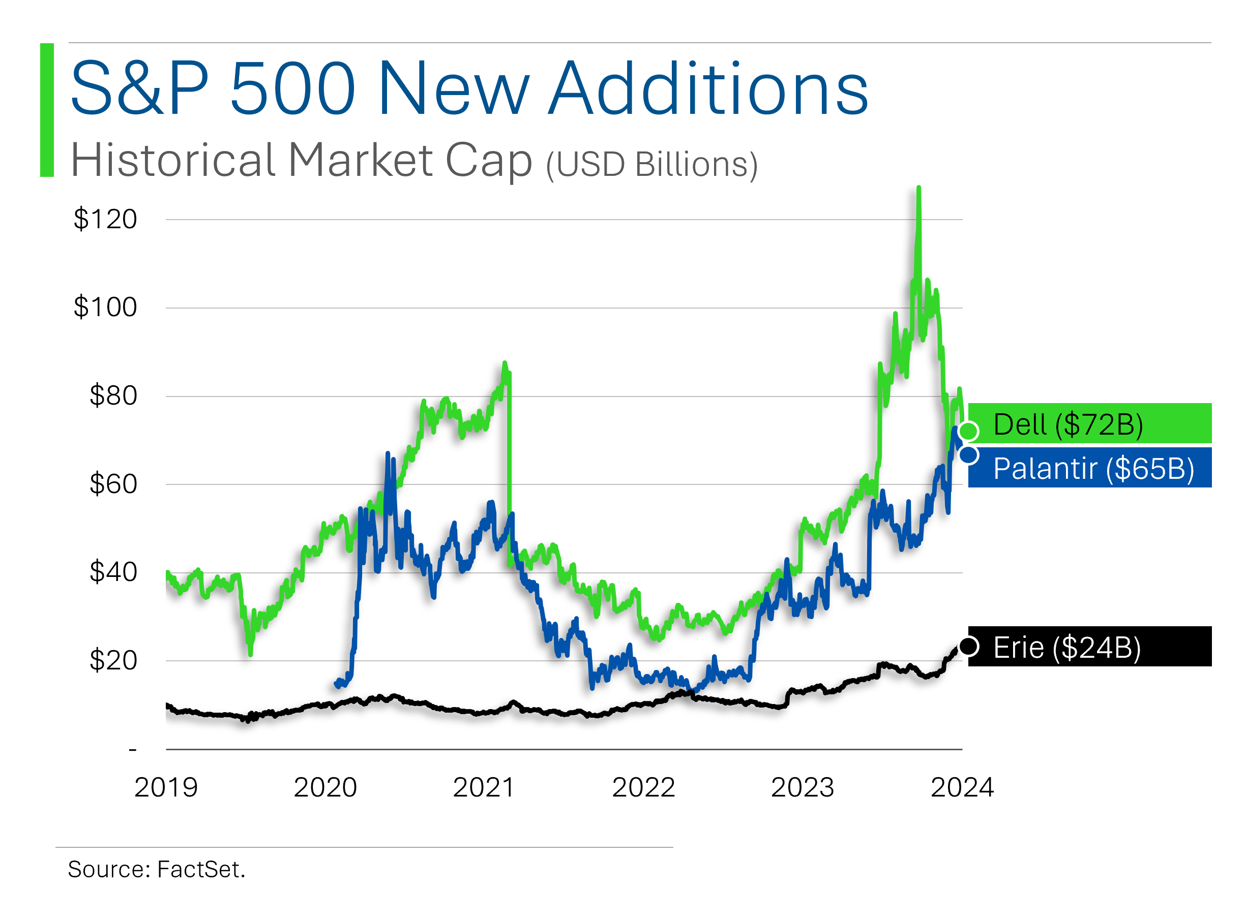 Palantir, Dell and something called ‘Erie Indemnity’ were announced as new additions to the S&P 500 on Monday, taking effect on September 23rd.