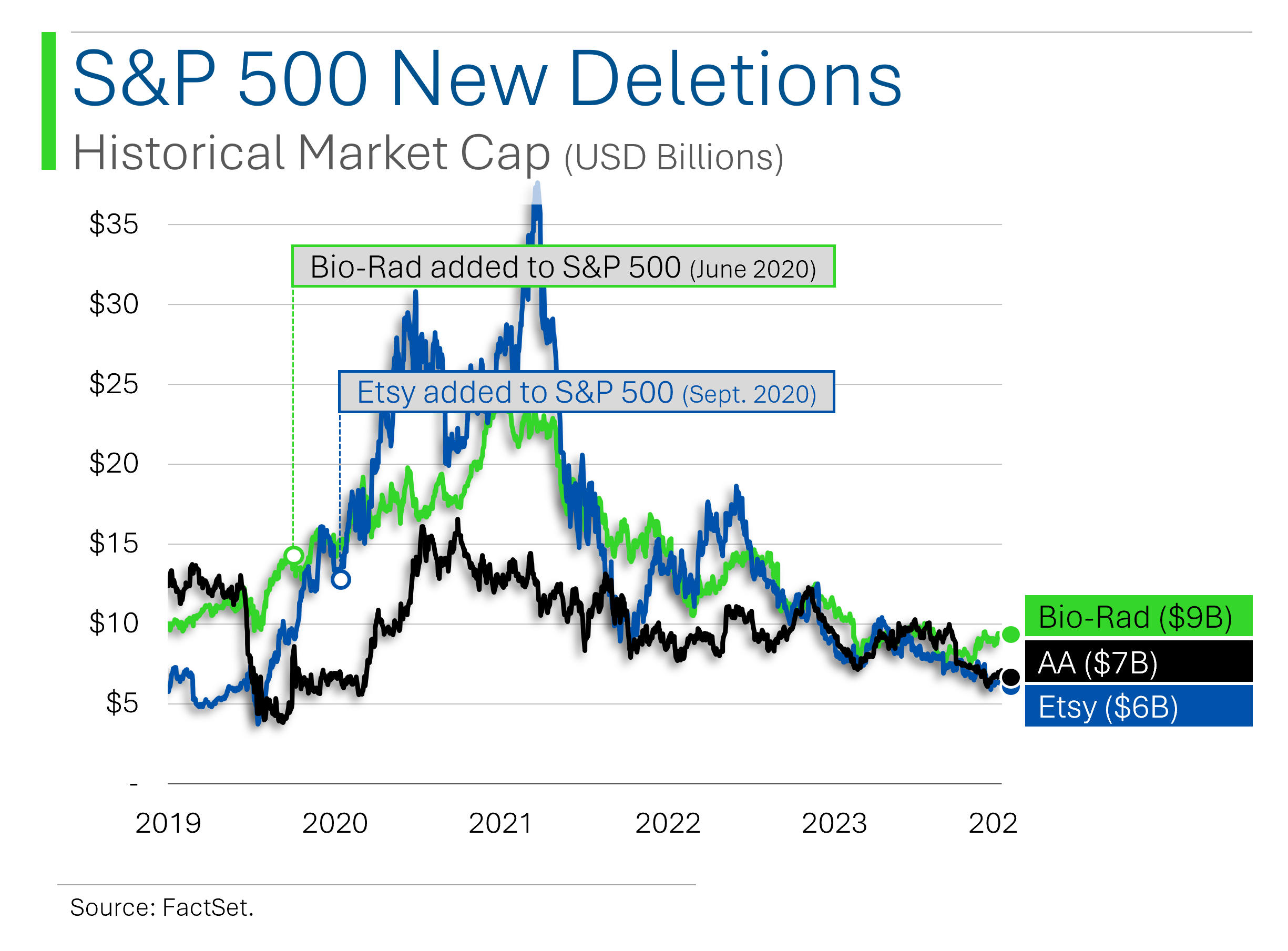 Yes, correct: It’s better to be added to or dropped from the S&P than it is to just hang-out in the index.
