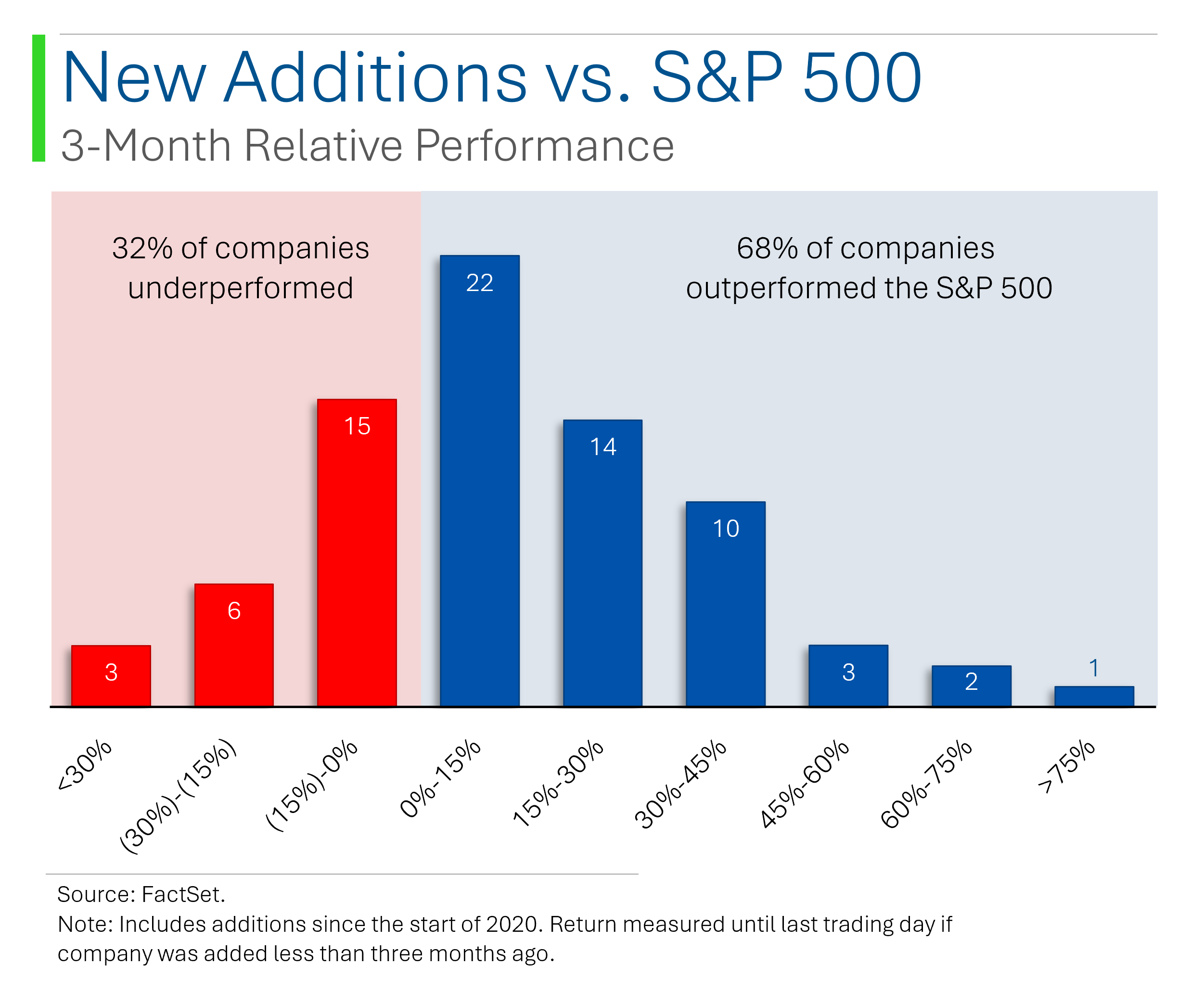 Moreover, in their first three months in the index, 68% of companies outperform the S&P 500. Not impressed?