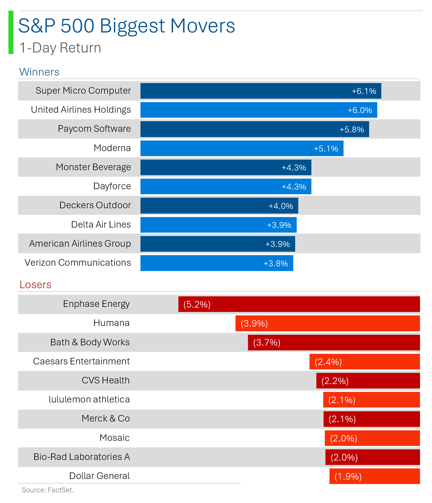 JetBlue Airways (JBLU) [+7.2%]: Bank of America upgraded JetBlue after seeing fuel prices drop and steady travel demand.