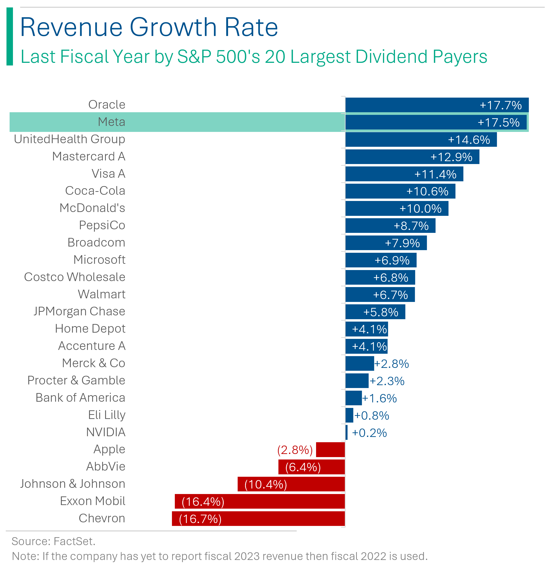 Yesterday I dug into the growth rates associated with companies that pay dividends (‘The Dividend Conundrum’), only to find out that, yes, the old adage that only slow growth companies pay dividends (generally) is true. The most glaring exception to that rule is Meta (the ole Facebook). When Meta announced it was rolling out a dividend last week, that came in the same earnings report where it showed 2023 revenue growth of 17.5%. Not exactly a lame duck or old fogy.