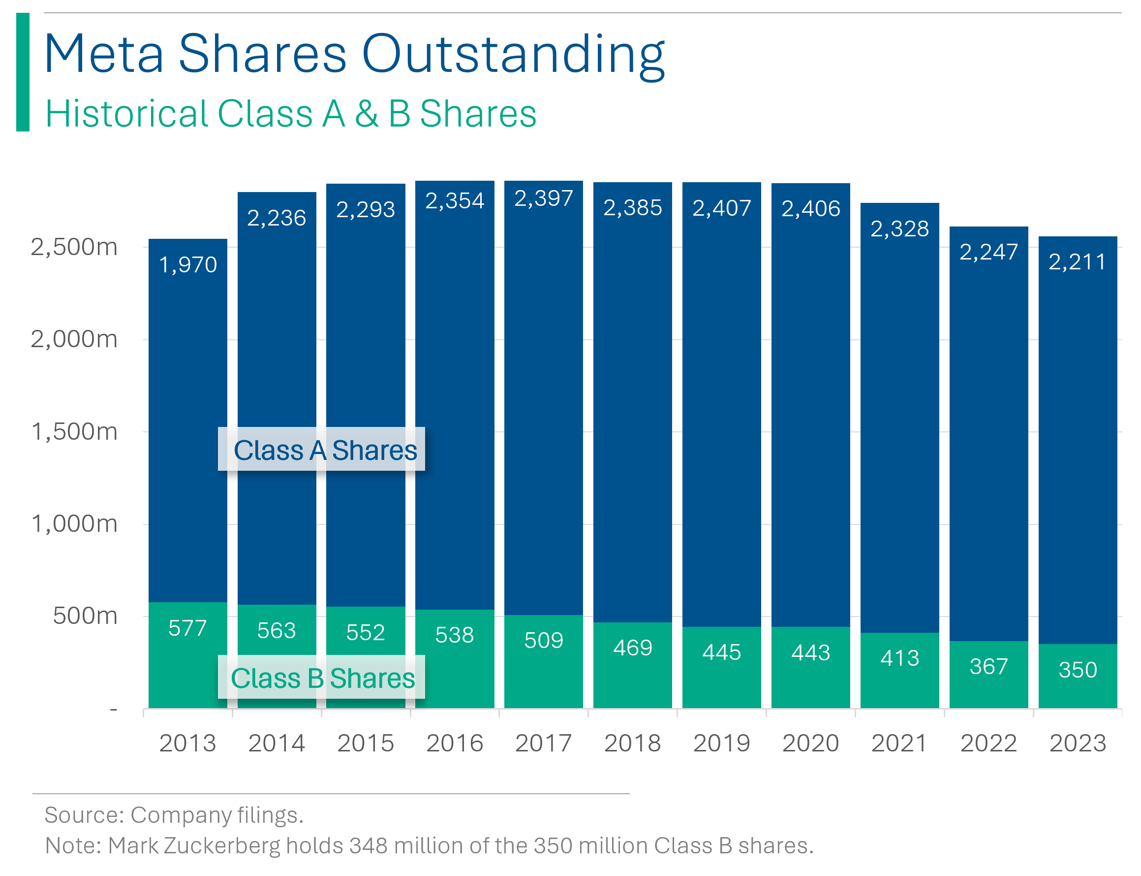 Working from the idea that Zuck wants to keep his voting majority (so the Board can’t fire him the next time he pulls a ‘metaverse’) but also pull cash out for his luxurious lifestyle, paying a dividend helps with this tremendously. As you can see, Meta has bought back ~200 million Class A shares over the last few years, which boosts his voting control, but he has also sold a lot of his Class B shares (note that not all the Class B shares were his historically but now they almost all are). The new dividend will end up paying Zuck around $700 million per year so he can maintain his voting dominance and keep his pockets flush.