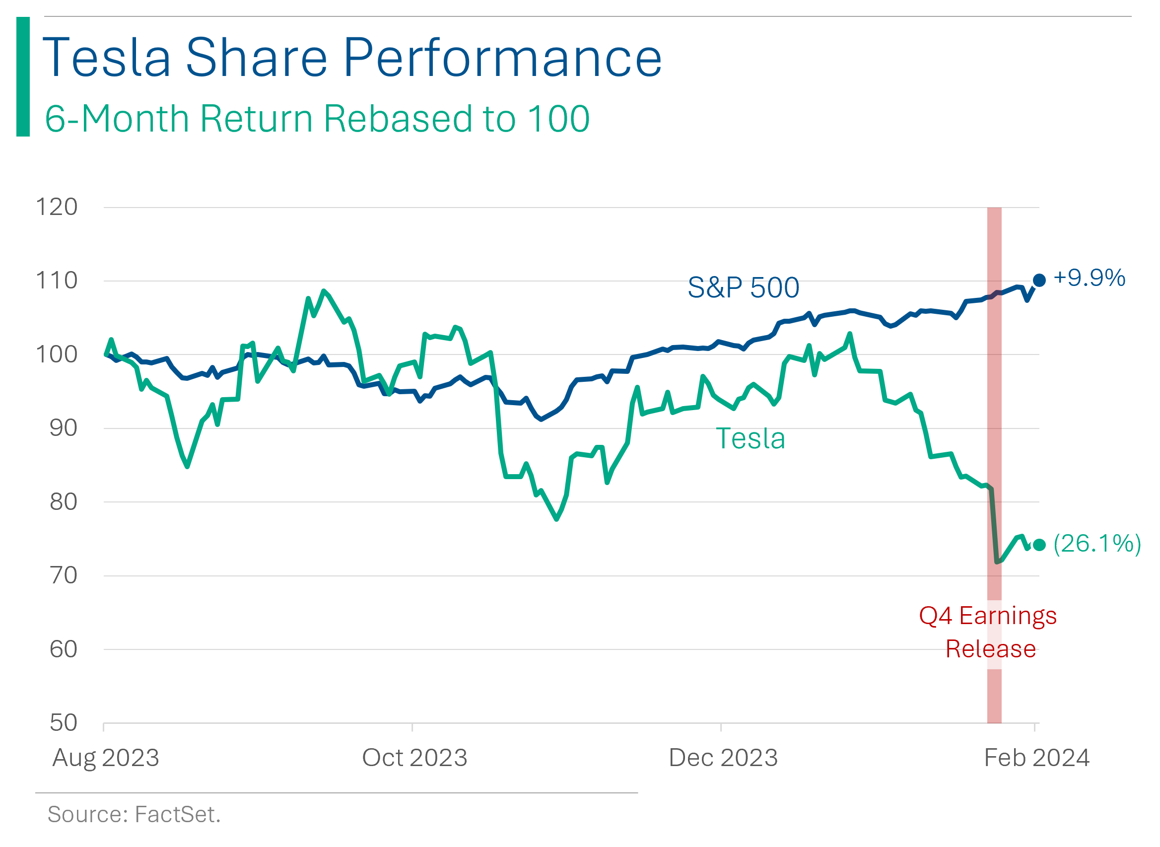 Tesla’s shares are off to a bad start in 2024 with the company heavily underperforming the S&P 500. A weak global outlook for EVs, messy Q4 reporting, and some Musk fueled antics (like that whole ‘pressuring Board members to do drugs with him’ thing) have weighed on the company, as has the recent success of competitor BYD. Hell, Tesla shares even went down on the day that Musk’s $56 billion pay package got rescinded (note: this means less dilution for shareholders and should have been a huge positive for the stock).